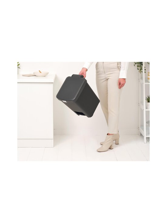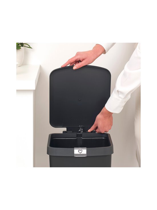 Tehosta kierrätystäsi Brabantia StepUp -roskasäiliöllä, joka on tilavuudeltaan 25 litraa. Poljinroskakori on valmistettu 91 % kierrätetystä materiaalista ja se on tehty jätteiden kierrätystä varten.Roska-astiassa on napsautettava pidike omille jätelapuille sekä kätevä roskapussilokero roskakorin sisällä. Jos pidät kierrätyksestä, tulet varmasti rakastamaan tätä roskakoria.