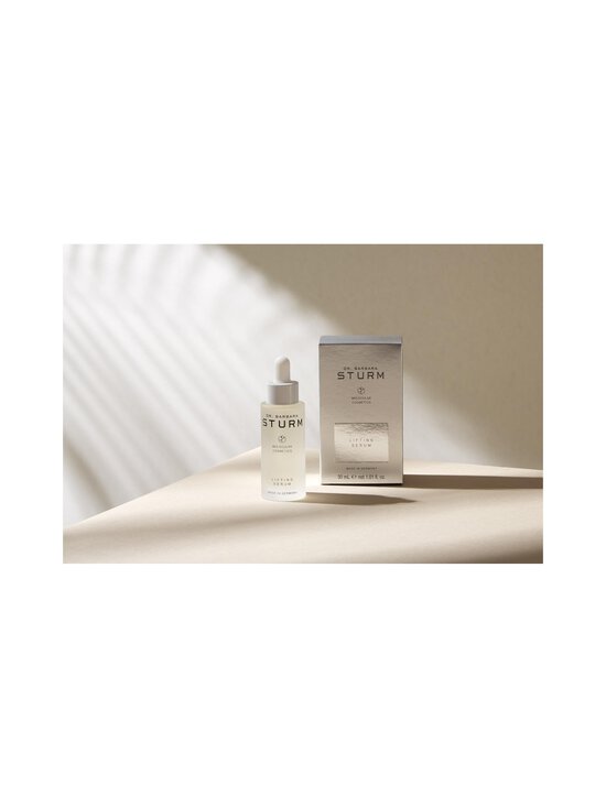 Ihoa kiinteyttävä ja kohottava seerumi. Seerumin sisältämät biopolymeerit vahvistavat ihon tukirakennetta parantaen ihon kiinteyttä ja elastisuutta. Tasoittaa ihoa vähentäen juonteita ja ryppyjä. Planktoneista saatavat uutteet tekevät ihon täyteläisemmäksi, kun taas portulakka ja hyaluronihappo rauhoittavat ja kosteuttavat ihoa. Levitä yhden pipetillisen verran kasvoille kevyesti taputellen. Tuotetta tulisi käyttää ihonhoitorutiinin viimeisenä vaiheena ennen meikkiä. Anna imeytyä 5 minuutin ajan ennen meikin levittämistä. Huomioi, että iho voi tuntua hieman kireältä kiinteyttävän vaikutuksen vuoksi.