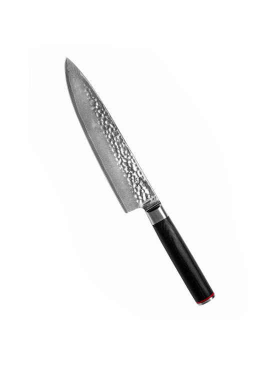 Gyuto är den japanska motsvarigheten till en traditionell kockkniv. Gyoto är smidig och välbalanserad för ett bekvämt grepp. Den kan skära allt utom ben och fryst mat. En hybrid av japanska och tyska bladprofiler, den lätt böjda magen tillåter gungande rörelser för enkel hackning och slipning, medan den sänkta spetsen underlättar exakt arbete.