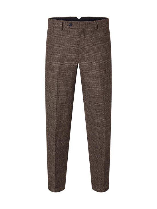 SELECTED-merkin SlhSlim-Reed-housut on suunniteltu modernille miehelle, joka arvostaa huoliteltua ulkonäköä ja laadukkaita materiaaleja. Housujen klassinen ruutukuvio antaa niille ajattoman ilmeen, joka sopii erinomaisesti niin työpäivään kuin rentoihin illanviettoihinkin. Materiaalissa on mukana lämmittävää villaa.