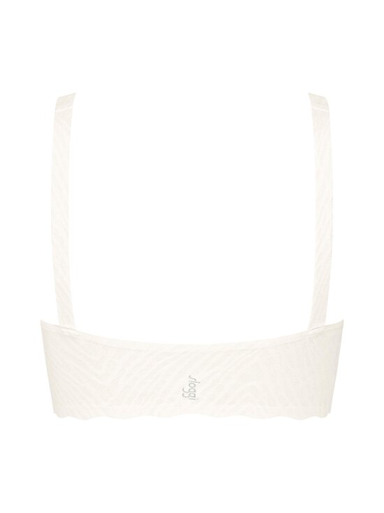 Sloggin saumaton rintaliivitoppi saa ilmeensä hienosta kuvioinnista ja aaltoilevasta reunasta. Kupit ovat muotoillut ja materiaali joustaa mukavasti. Zero Feel -rintaliivimalli tarjoaa pehmeän tunnun eikä kiristä.